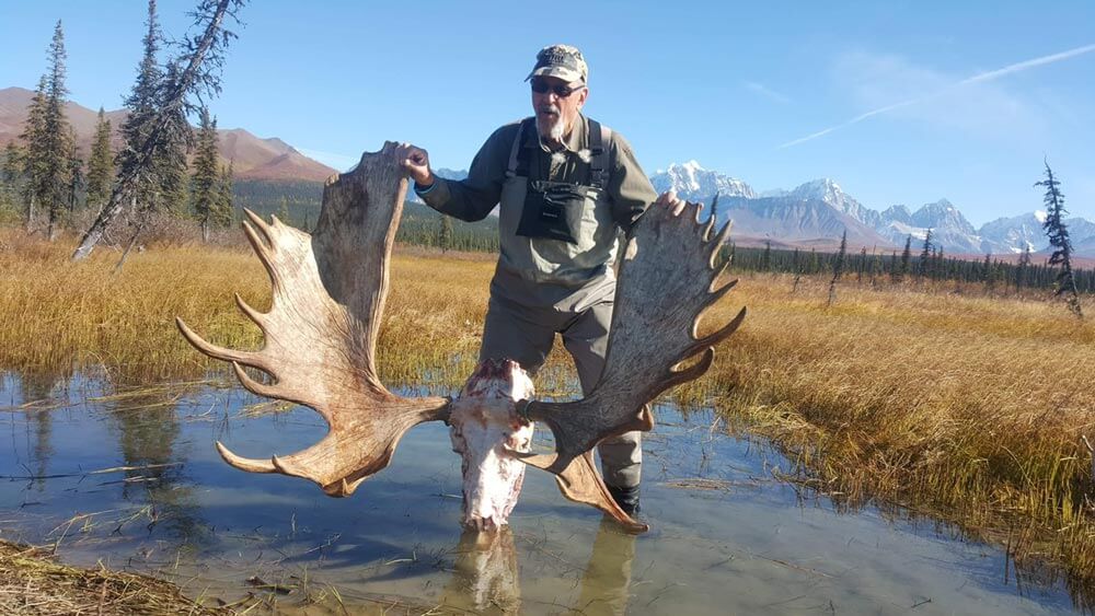 Alaska-Yukon moose is the largest of the North American moose, weighing up to 1800 pounds. If you are looking for a giant moose in North America, then this is the moose you want to hunt. We offer opportunities during all parts of the season, including rut opportunities that range from late September through the first couple weeks of October. Found in Alaska, the Yukon, and western NWT, a trophy bull will have an antler spread of over 60 inches with some up to 70+.